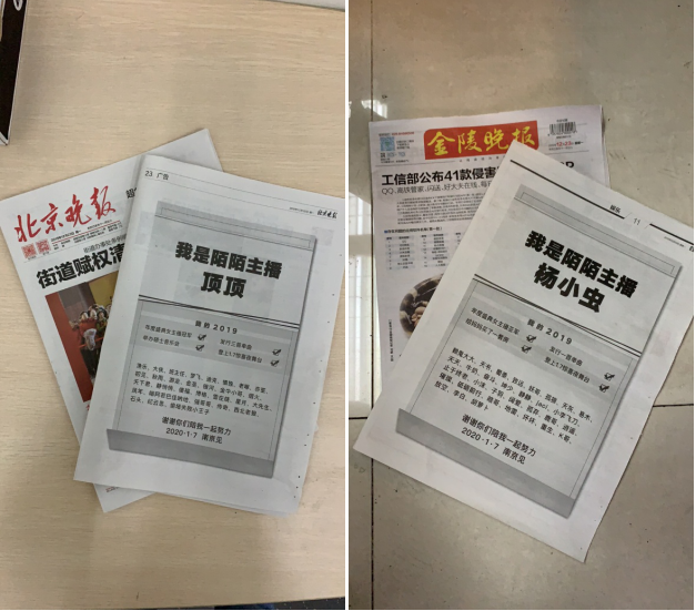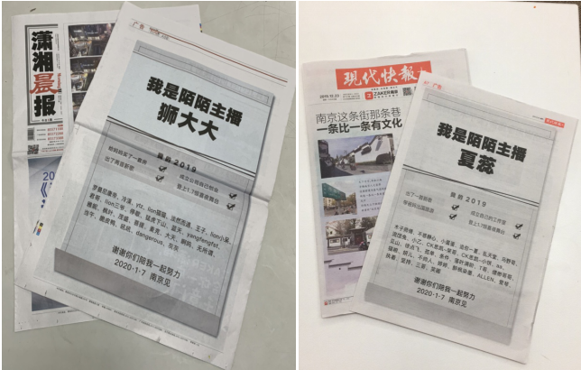 有趣的是,在致谢之外,10名主播还都在报纸上列出了自己的2019年成就,包括但不限于举办硕士音乐会、发行多首单曲、成立了个人工作室、第一次担任制作人、给妈妈买了一套房等等。
